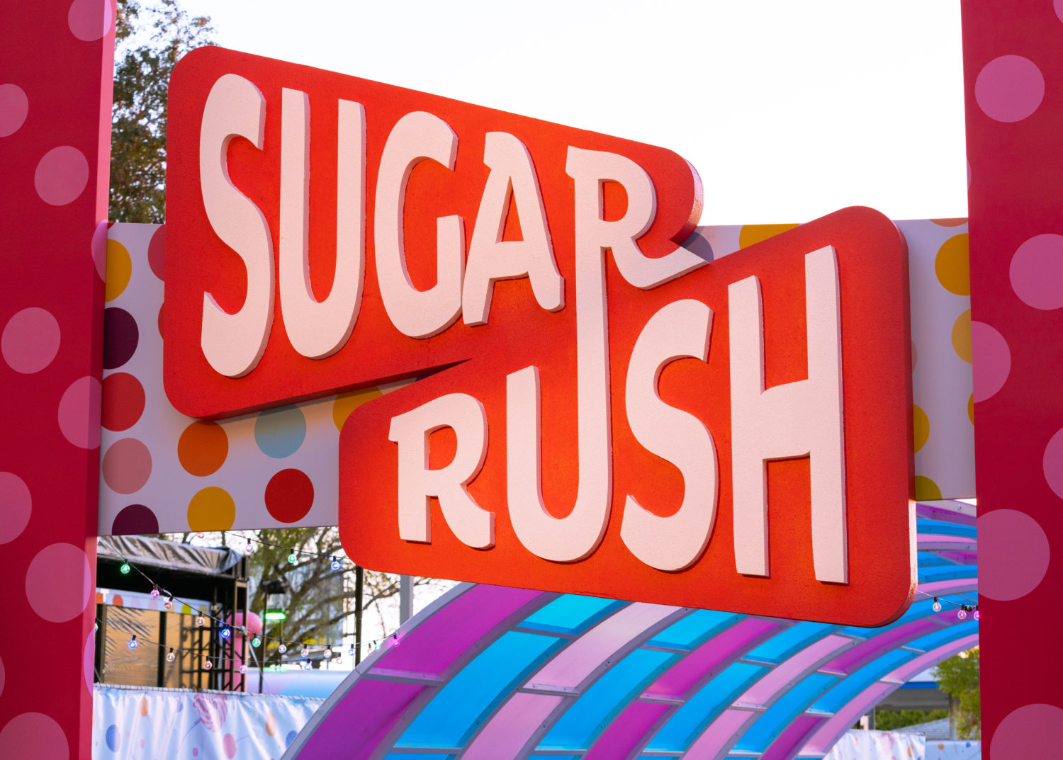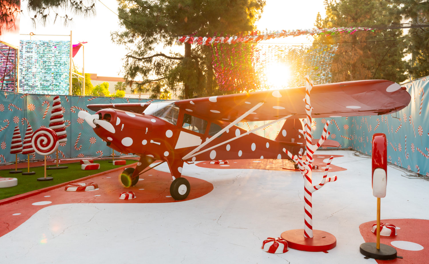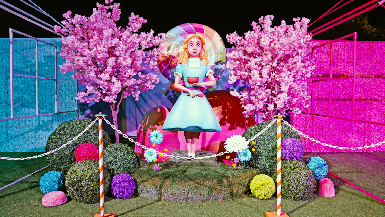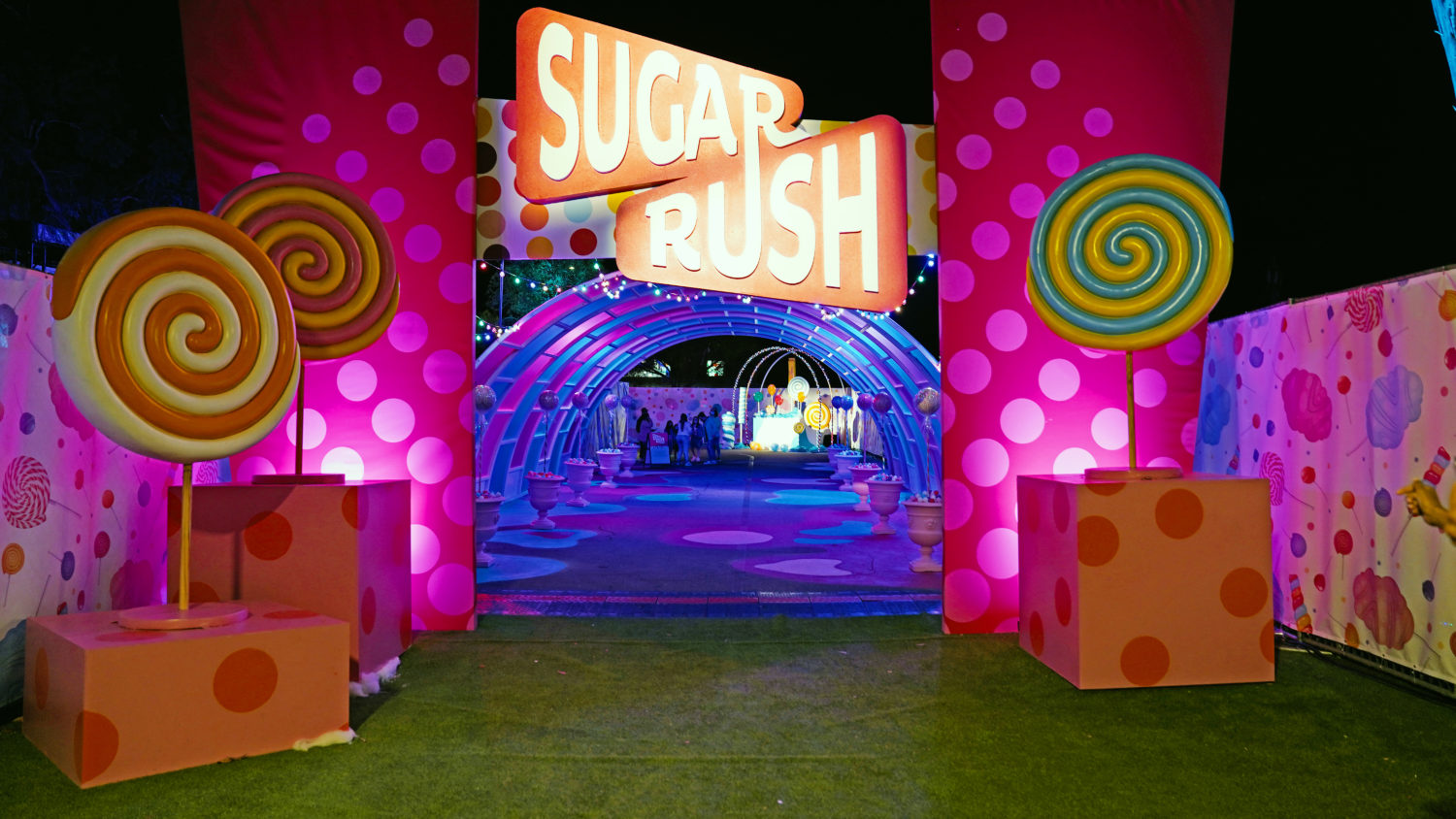 As restrictions in L.A. begin to loosen, getting to go out again is a sweet sensation. Sugar Rush, a new open-air photo-op experience aims to take the feeling to another level with a Willy Wonka-like walk-through in Woodland Hills. The 50,000+ square foot amusement offers a limited-capacity confection filled with colorful installations, giant props, eye-catching displays, performances, tunnels, and more. Created by Experiential Supply (the team behind Hauntoween LA and WonderLAnd drive-throughs last year), Sugar Rush ventured outside of the car for this one but safety remains the highest priority.