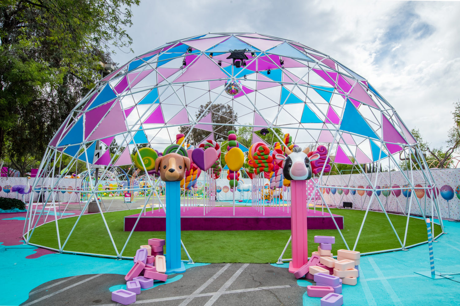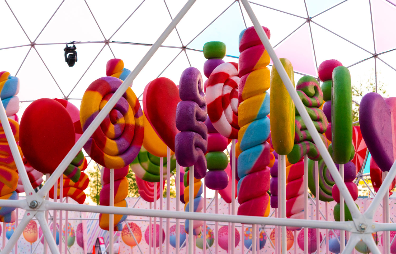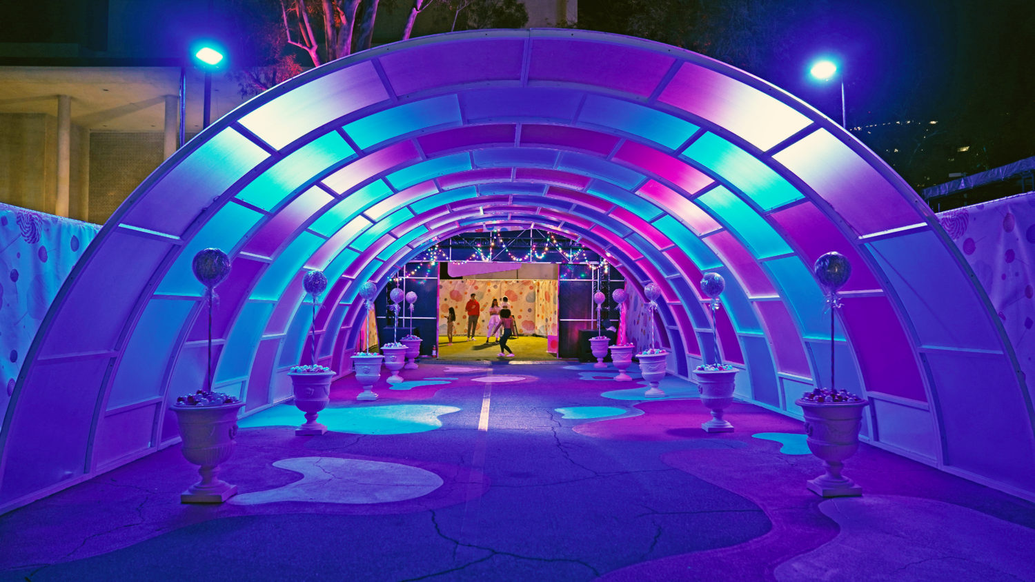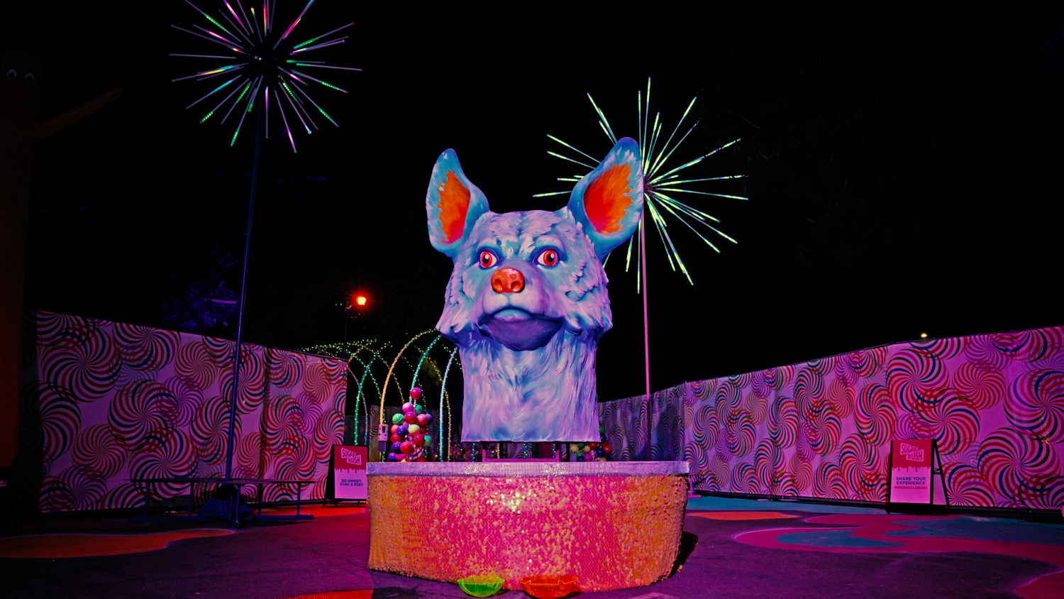 As restrictions in L.A. begin to loosen, getting to go out again is a sweet sensation. Sugar Rush, a new open-air photo-op experience aims to take the feeling to another level with a Willy Wonka-like walk-through in Woodland Hills. The 50,000+ square foot amusement offers a limited-capacity confection filled with colorful installations, giant props, eye-catching displays, performances, tunnels, and more. Created by Experiential Supply (the team behind Hauntoween LA and WonderLAnd drive-throughs last year), Sugar Rush ventured outside of the car for this one but safety remains the highest priority.
