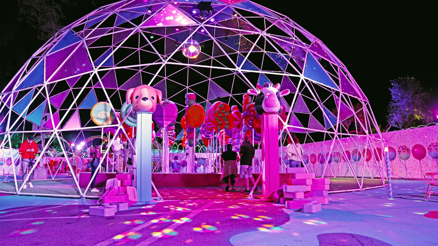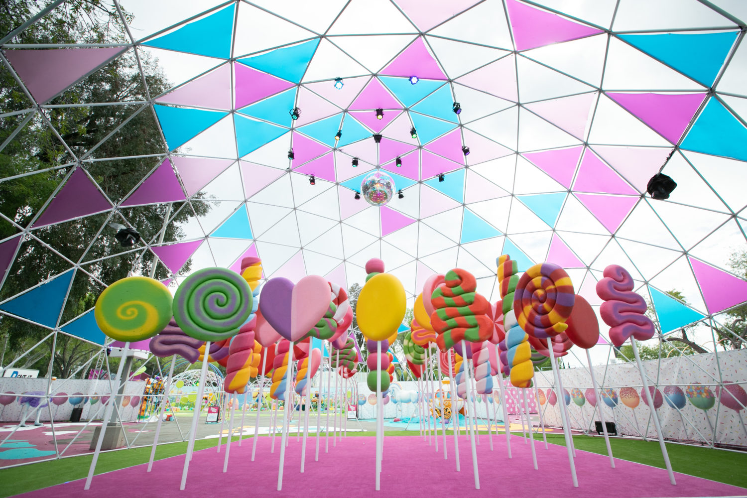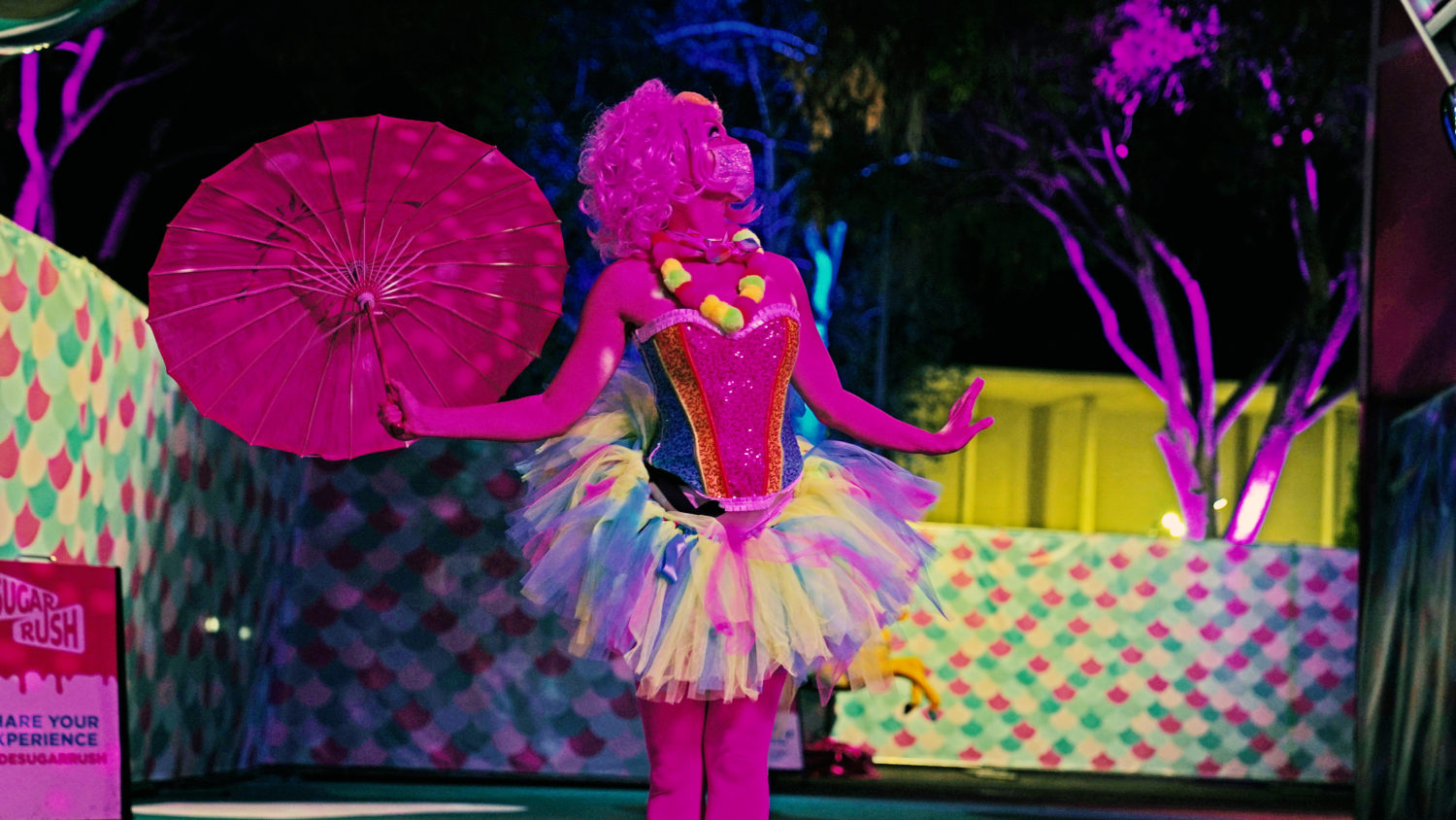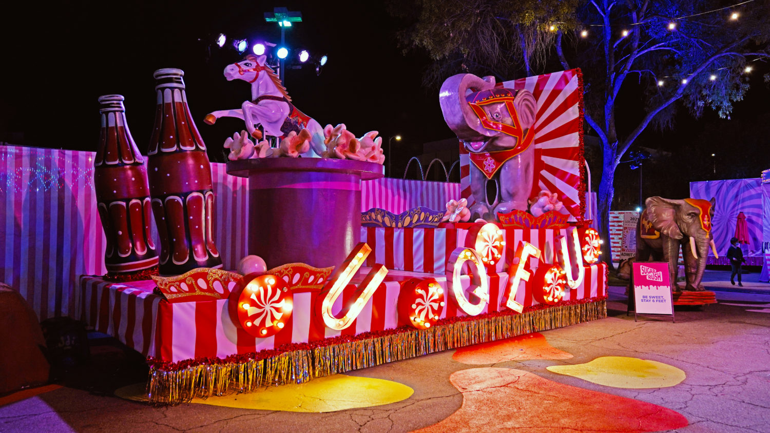 As restrictions in L.A. begin to loosen, getting to go out again is a sweet sensation. Sugar Rush, a new open-air photo-op experience aims to take the feeling to another level with a Willy Wonka-like walk-through in Woodland Hills. The 50,000+ square foot amusement offers a limited-capacity confection filled with colorful installations, giant props, eye-catching displays, performances, tunnels, and more. Created by Experiential Supply (the team behind Hauntoween LA and WonderLAnd drive-throughs last year), Sugar Rush ventured outside of the car for this one but safety remains the highest priority.