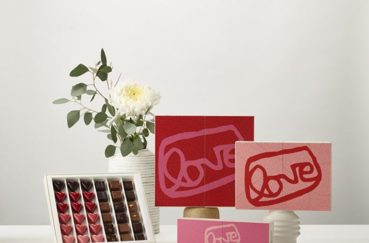 In collaboration with Beverly Hills-based andSons Chocolatiers, the limited edition “LOVE” Box is an assortment of heart-shaped bonbons and classic European ganaches created by acclaimed chef Kriss Harvey and fit into an adorable keepsake box with design by graphic designer Kate Johnston, and Grant’s love icon printed on top. A portion of the proceeds will be donated to grantLOVE, Grant’s personal project that produces and sells original artworks and editions to benefit artist projects and arts nonprofit organizations.