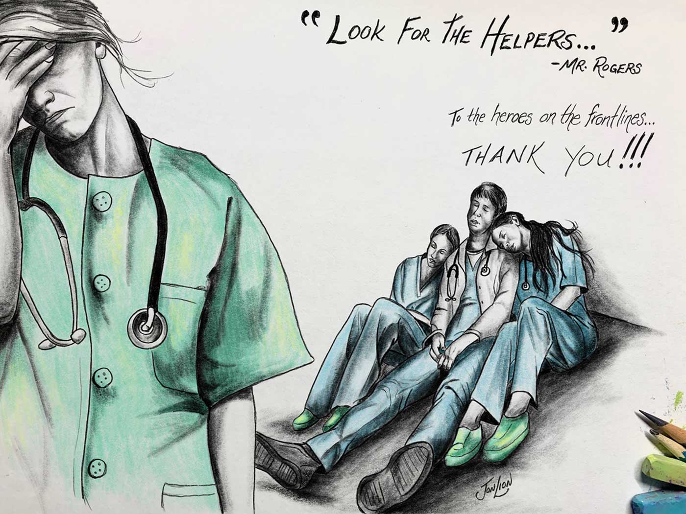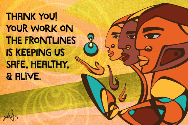 These days we are all looking for ways to help. The best thing you can do of course is to stay home and be safely distant when you’re out. If able, you can donate money or mask-sewing to the best of your ability. And there’s also a lot to be said for the power of making art and the meaningful gesture of saying thank you.