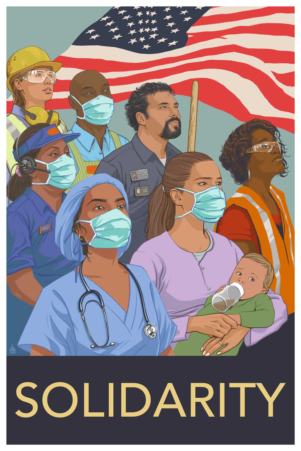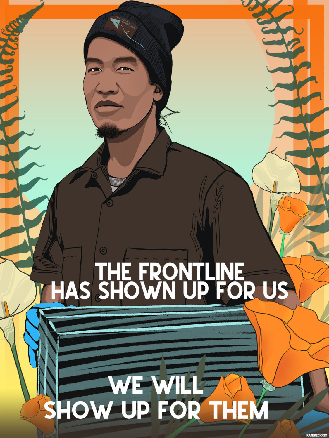 The project creators at Soze Agency and Big Bowl of Ideas describe Dear Frontline as, “created to facilitate and inform artistic expressions as a constant shining of a light on the risk-taking work taking place and addressing the critical issues and concerns that these workers face every day.” That’s why in addition to the digital postcard campaign, they’ll be placing large-scale versions of the art and notes in coronavirus hot spots like Seattle, New York, New Orleans, Detroit, the Bay Area — and Los Angeles.